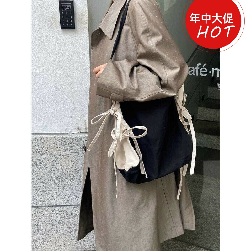 2022新g款蝴蝶结大容量帆布包小众设计感原创单肩包袋韩版纯色森热门设计联盟服务商